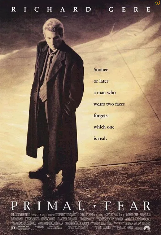 프라이멀 피어(1996)는 윌리엄 딜(William Diehl)의 동명 소설을 원작으로 그레고리 호블릿(Gregory Hoblit)이 감독한 흥미진진한 법정 스릴러입니다. 영화는 유명세와 논란의 여지가 있는 사건을 다루는 숙련되고 세간의 이목을 끄는 변호인 마틴 베일(리차드 기어 분)을 중심으로 전개됩니다. 베일은 시카고에서 인기 있는 대주교 러시먼을 잔인하게 살해한 혐의로 기소된 켄터키 출신의 수줍음 많고 말을 더듬는 19세 소년 아론(에드워드 노튼 분)을 변호하게 되는데, 그는 피범벅이 된 채로 현장에서 도망쳐 나온 채 발견되어 그의 혐의는 거의 확실시 되었습니다. 그러나 베일은 사건을 더 깊이 조사하면서 대주교를 둘러싼 수많은 부패와 학대정황을 발견합니다. 러시먼은 아론을 포함하여 취약한 청소년을 성착취하고 학대했다는 것이 밝혀집니다. 그러면서 아론의 살인 동기까지 명확해져 보였습니다.